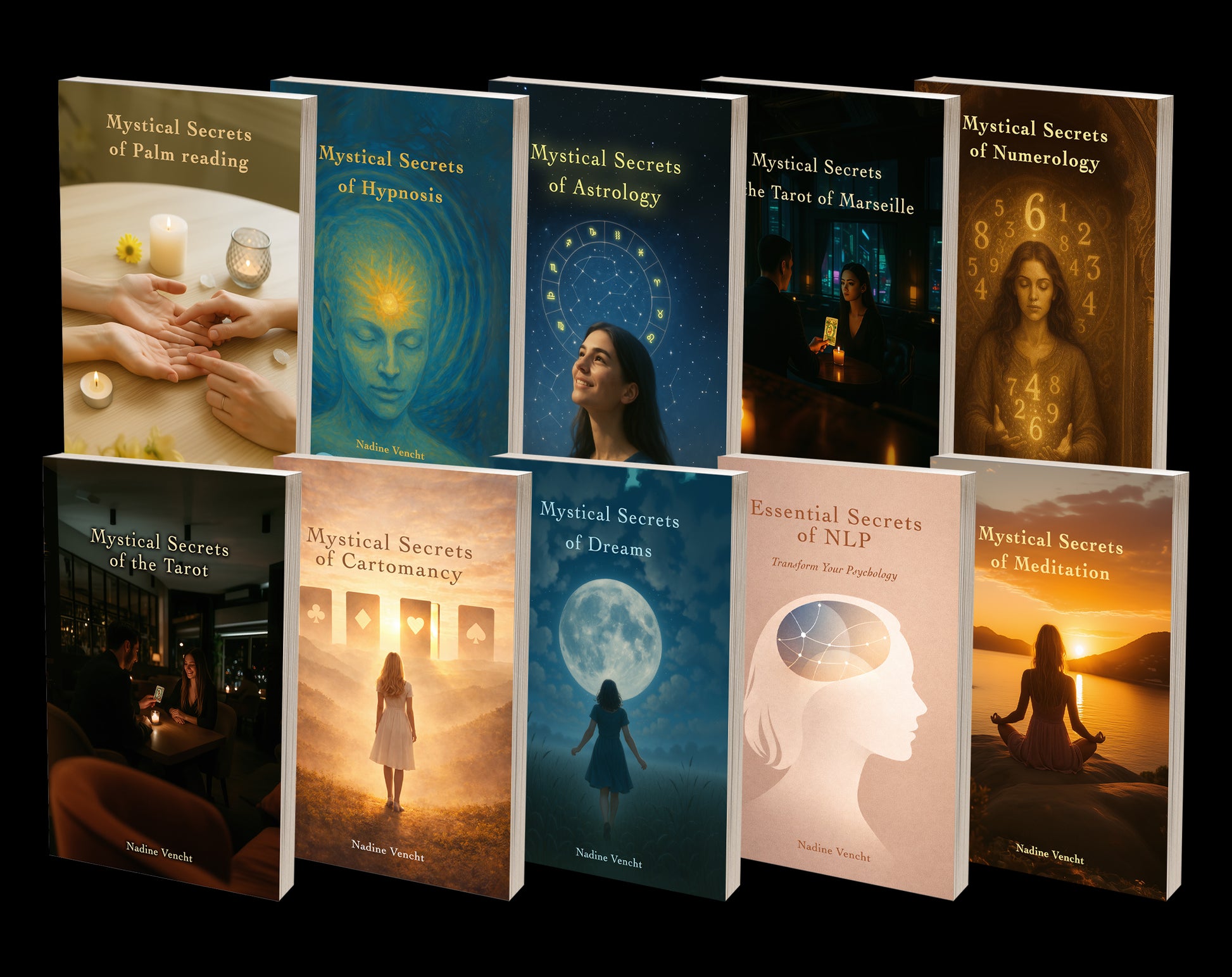 The Echo series currently offers 10 books: Dreams, NLP, Cartomancy, Meditation, Numerology, Palm reading, Astrology, Hypnosis, Rider-Waite Tarot, Tarot de Marseille.