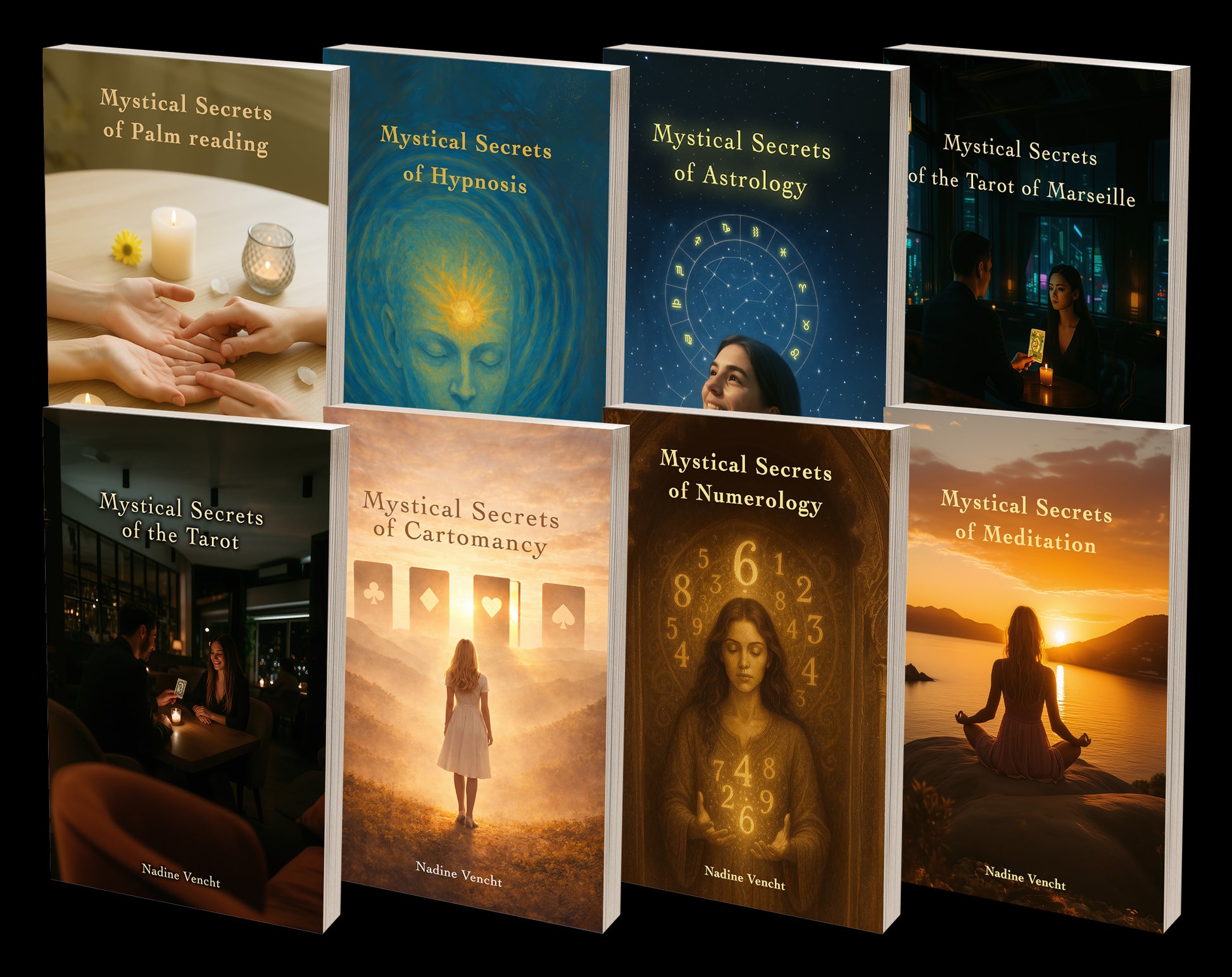 I have written twelve different books, covering various domains: cartomancy, Tarot, meditation, hypnosis, astrology, dreams, numerology, and so on. I will publish a new title each month, for one year, in English and in French.
