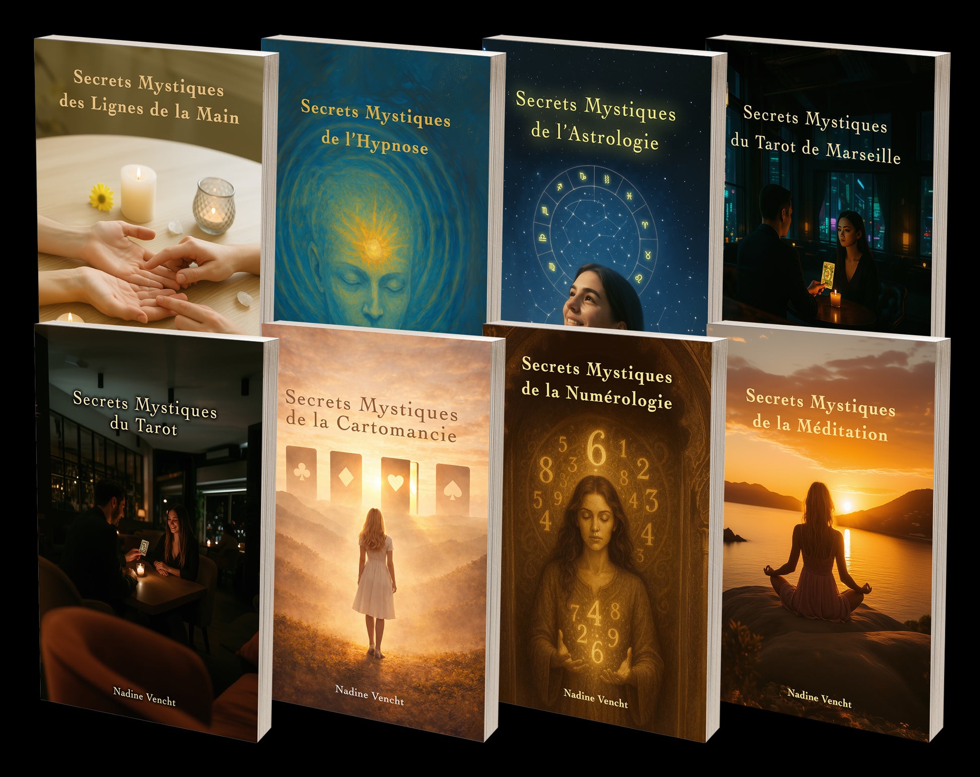 The Echo series currently offers eight books: Cartomancy, Meditation, Numerology, Palm reading, Astrology, Hypnosis, Rider-Waite Tarot, Tarot de Marseille.